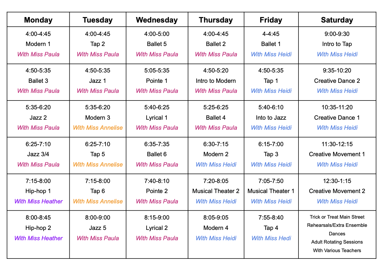 ** Lyrical & Pointe students must also be enrolled in Ballet.